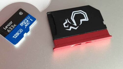 De cardreader zit intern op een USB3-bus waarvan de snelheid weinig te wensen over laat. Dus hoe sneller het kaartje, hoe beter de prestaties. Dat idee hebben ze bij meer bedrijven gehad maar ik was wel gecharmeerd van de prachtige Nifty MiniDrive. Dit Micro-SD houdertje is van keurig afgewerkt geanodiseerd aluminium, rood of zilver. Ik heb er een groot deel van mijn statische bestanden op geparkeerd: muziek, video, foto’s van de iPhone, Dropbox, Google Drive etc. Al die dingen die niet direct een supersnelle SSD nodig hebben om op te wonen.